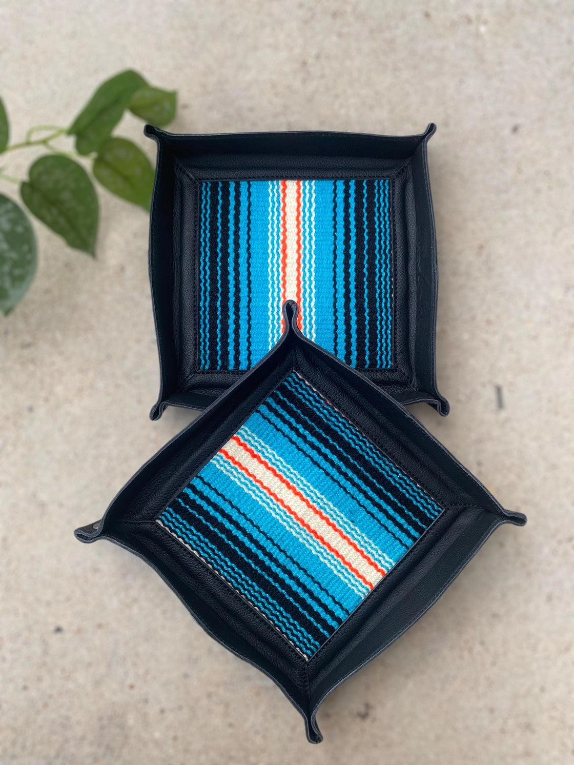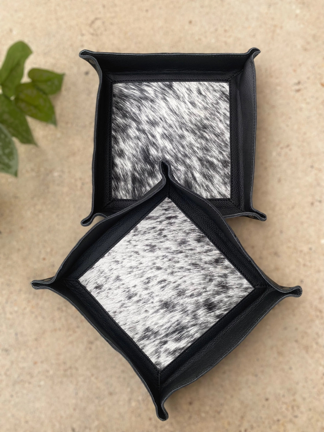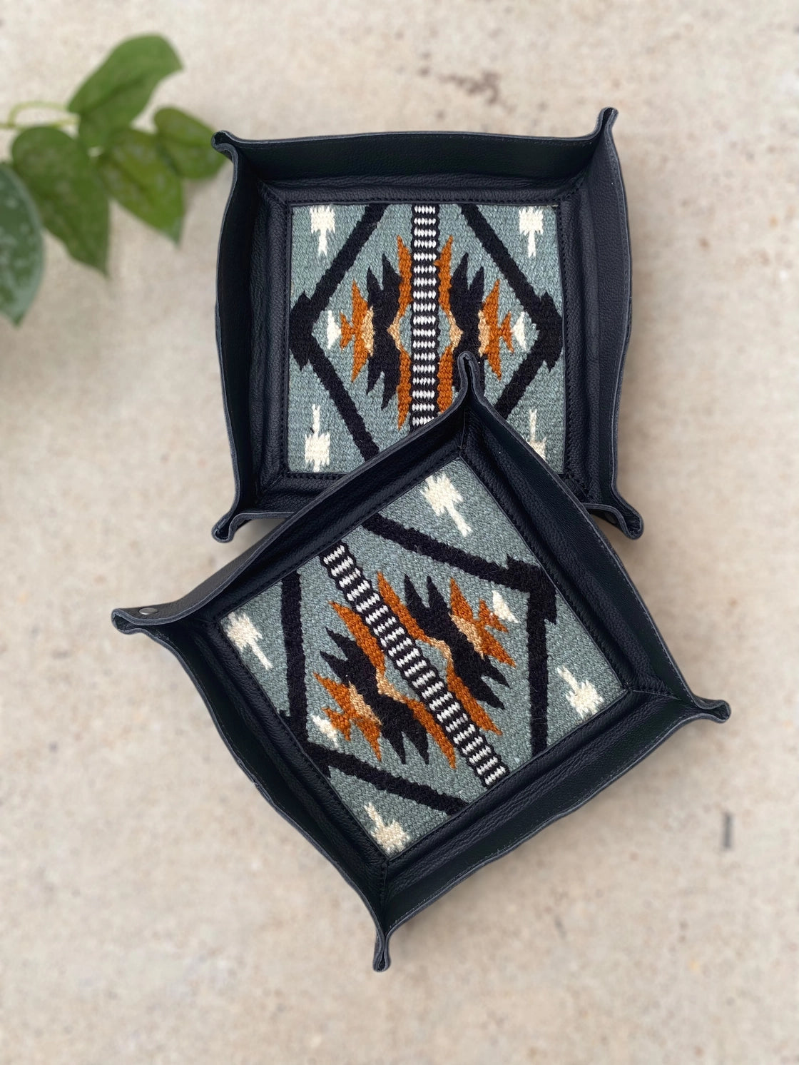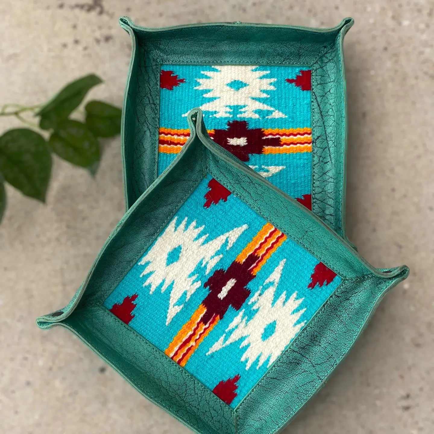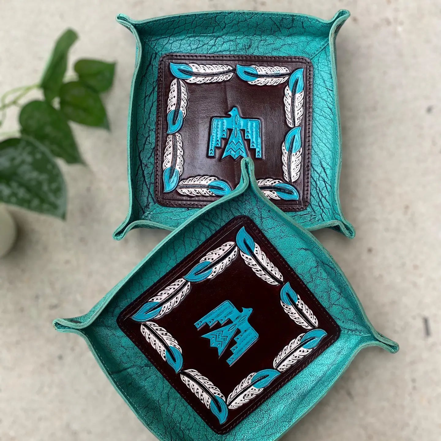 Small Decorative tray made of genuine leather and hand painted Measurement: 7x6”