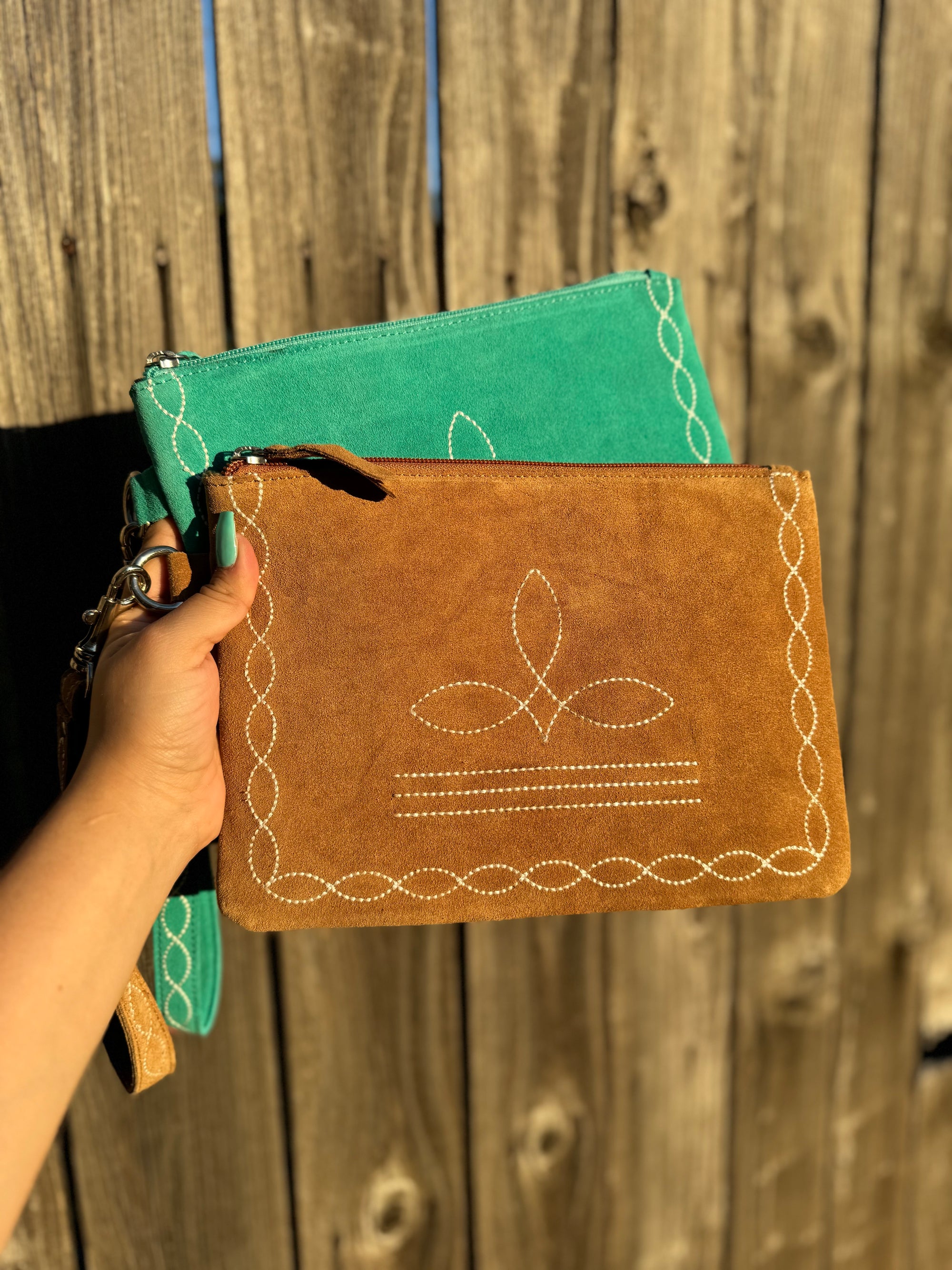 Boot Stitch Suede Coin Pouch