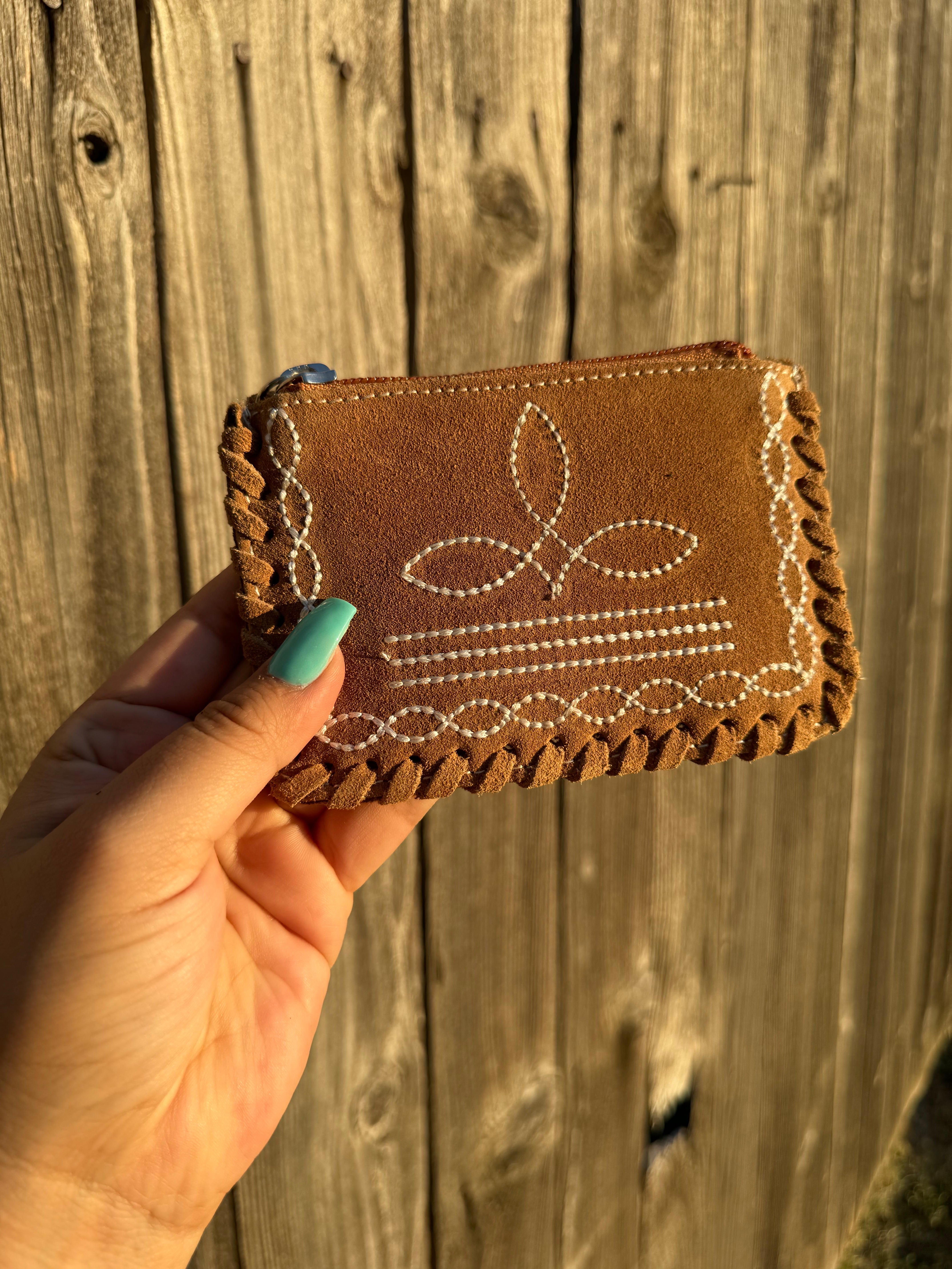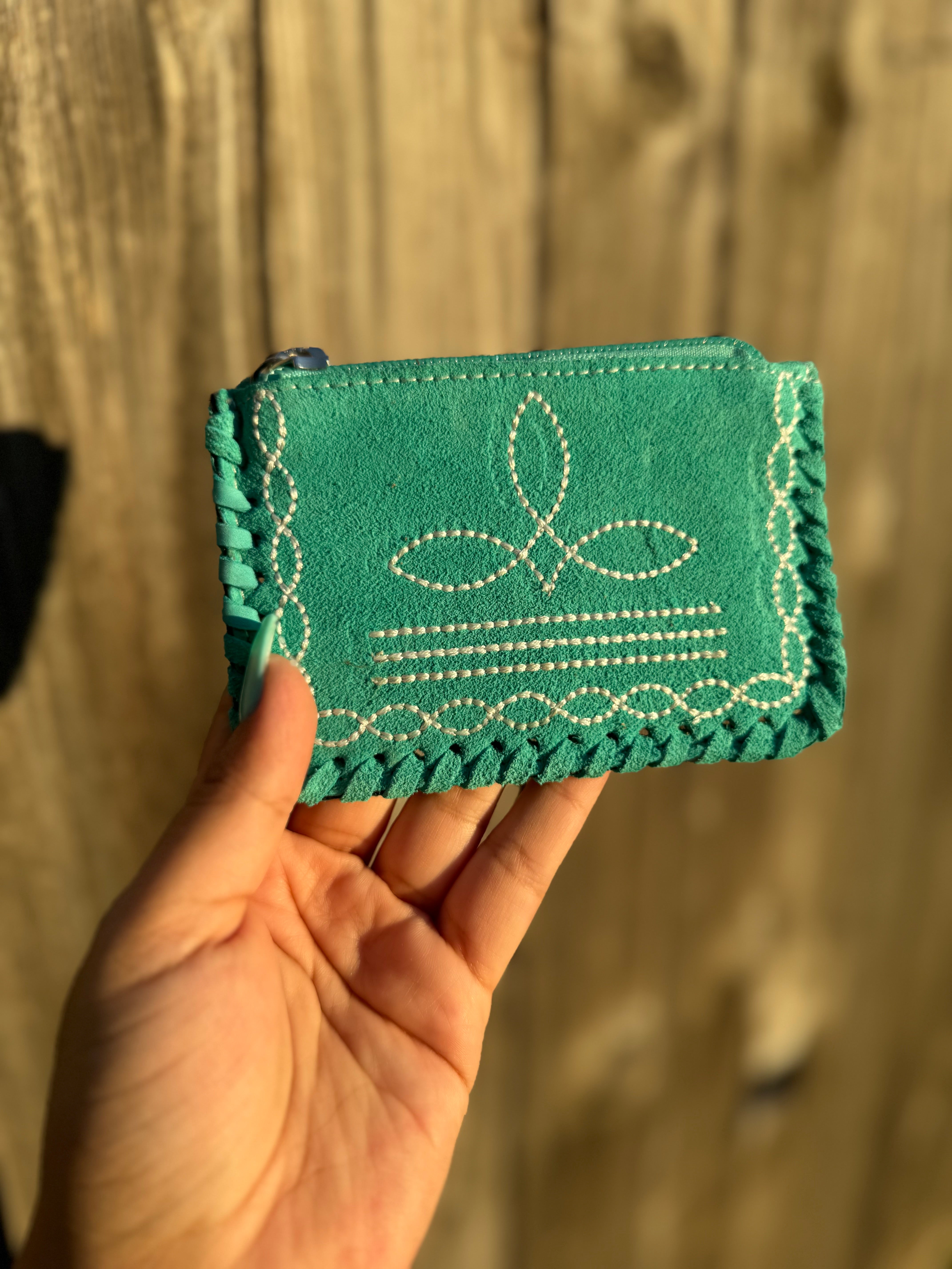 Boot Stitch Suede Coin Pouch